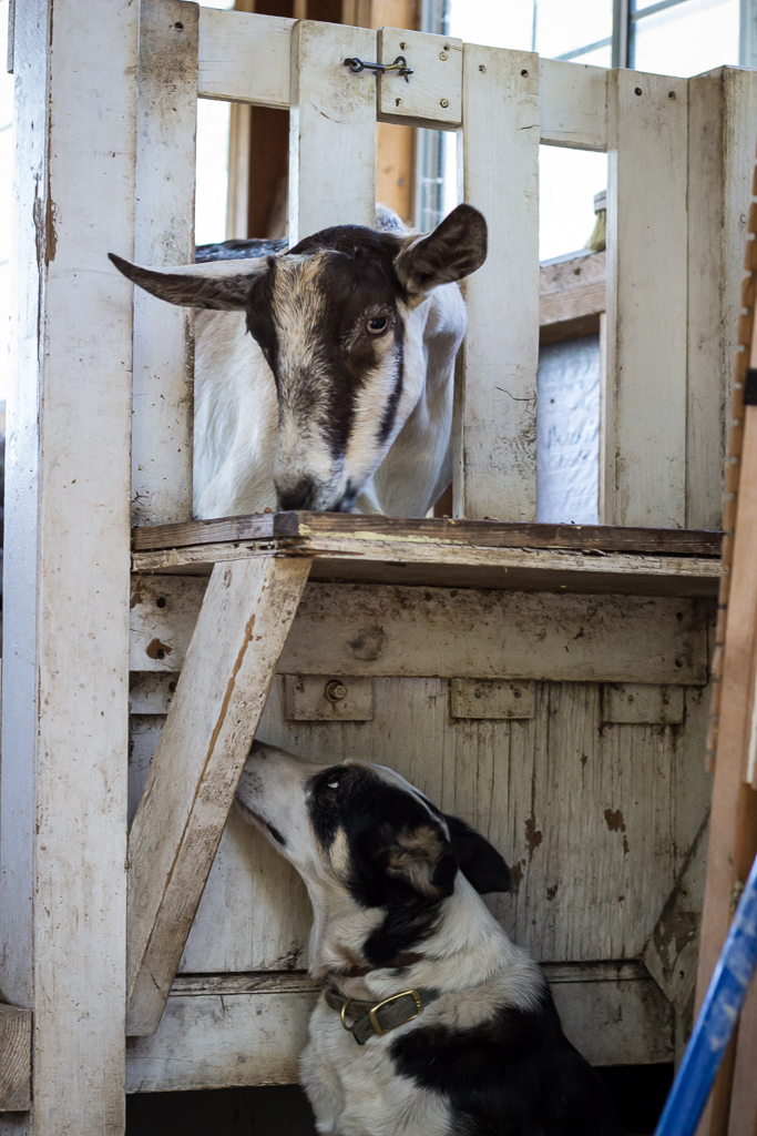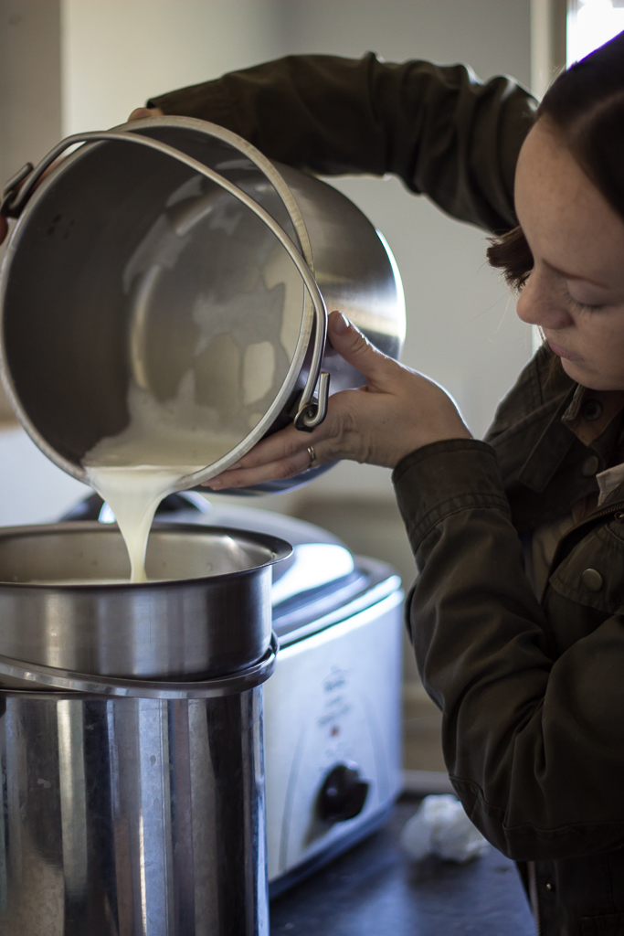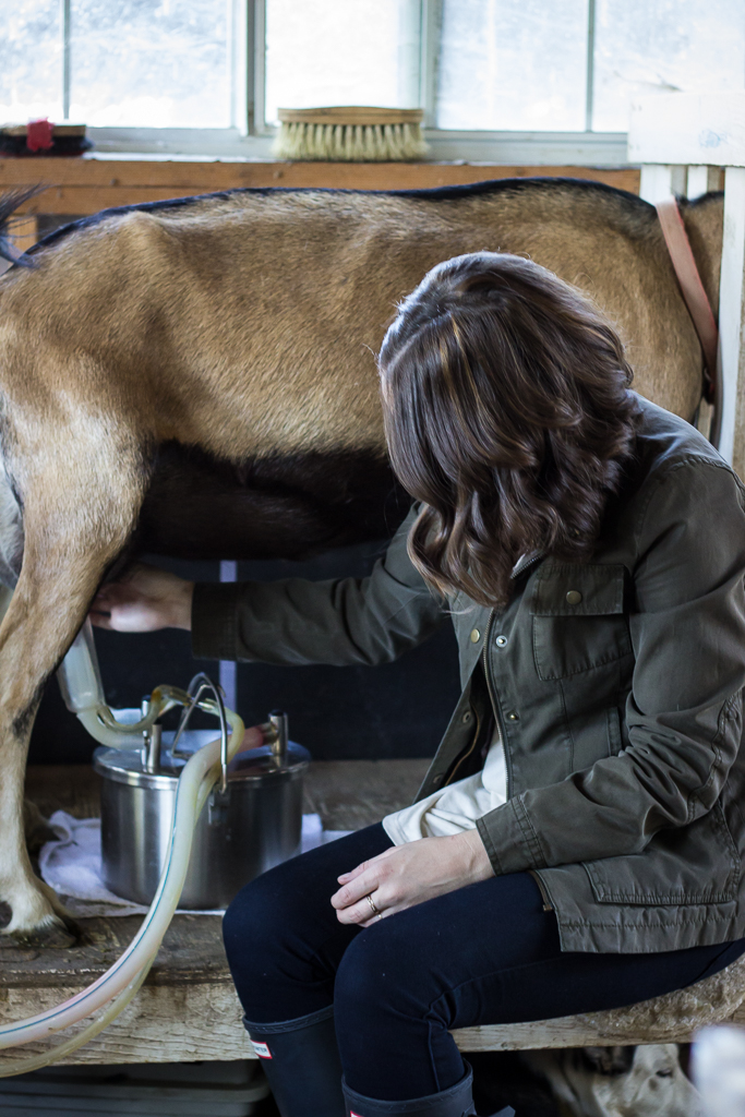 Morgan and Bella spent some time preparing for the supper at the farm where Bella’s milk goats live. The milk they harvested was turned into homemade fromage blanc and ricotta that was served at the supper. They gathered eggs from the pasture raised hens to be used for the ice cream and they harvested pomegranates for the salad and decor.