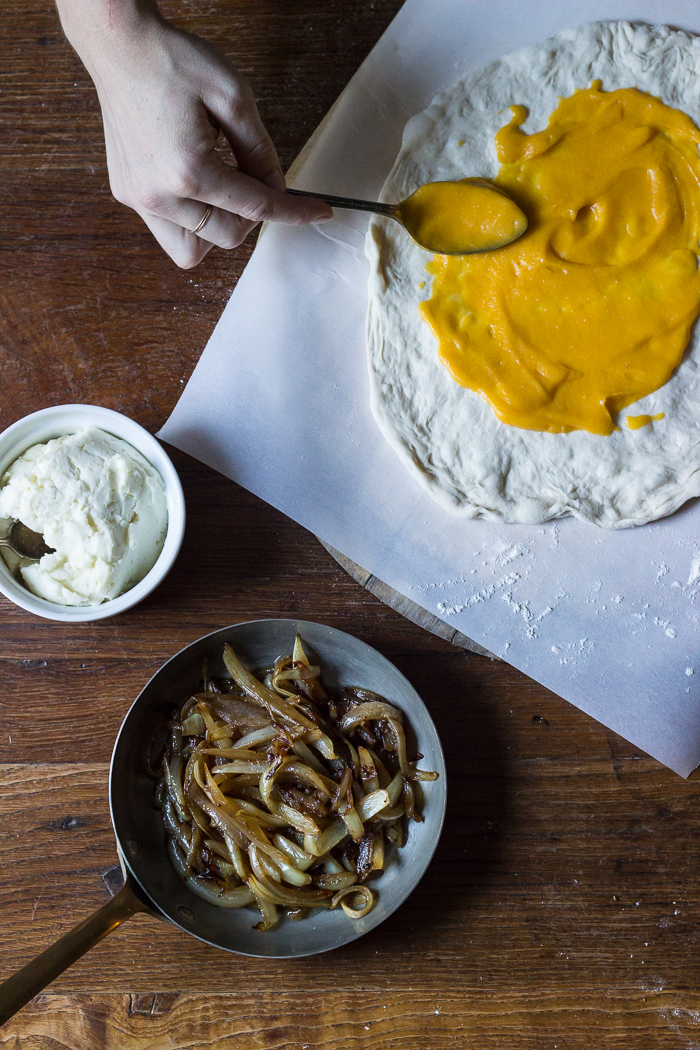 caramelized onion + sage + ricotta + butternut sauce flat bread
