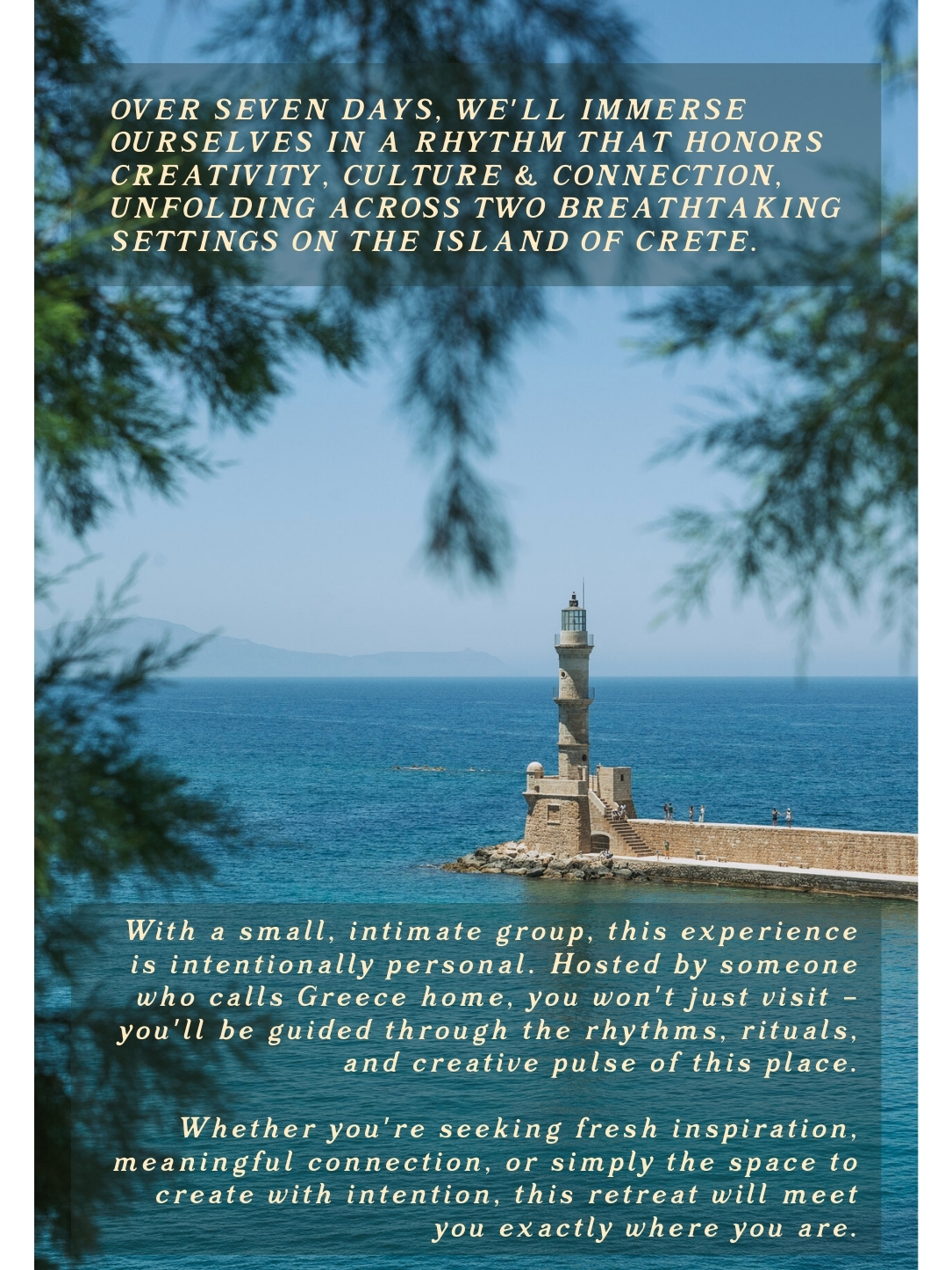 If you feel the pull, I’d love to welcome you to my next Creative Retreat in Chania. There are only four spots remaining for this upcoming experience.
